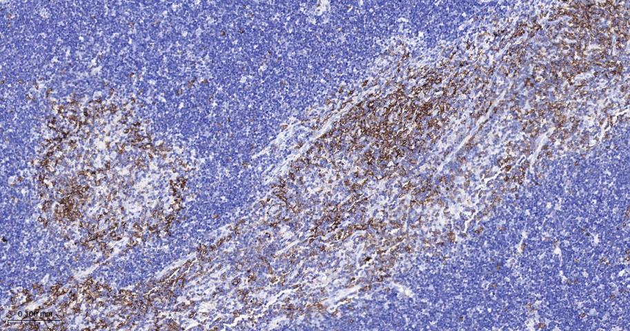 Paraformaldehyde-fixed, paraffin embedded Human Tonsil; Antigen retrieval by boiling in sodium citrate buffer (pH6.0) for 15 min; The section was incubated with LSP1 Monoclonal Antibody, Unconjugated (bsm-61255R) at 1:200 overnight at 4°C, followed by conjugation to the bs-0295G-HRP and DAB (C-0010) staining.