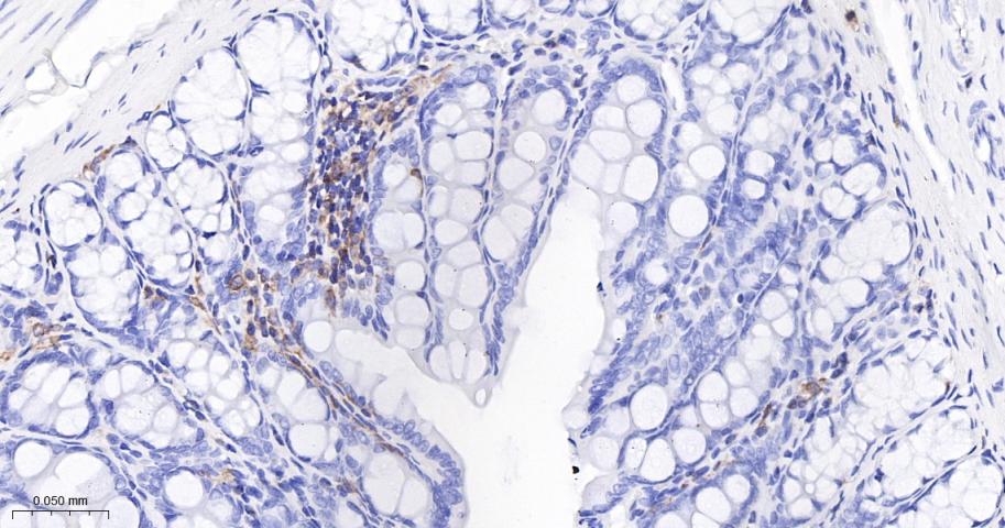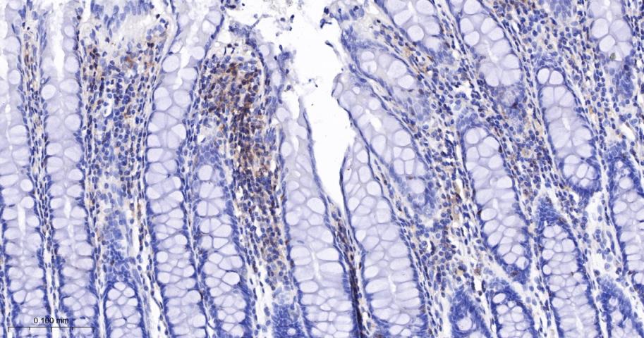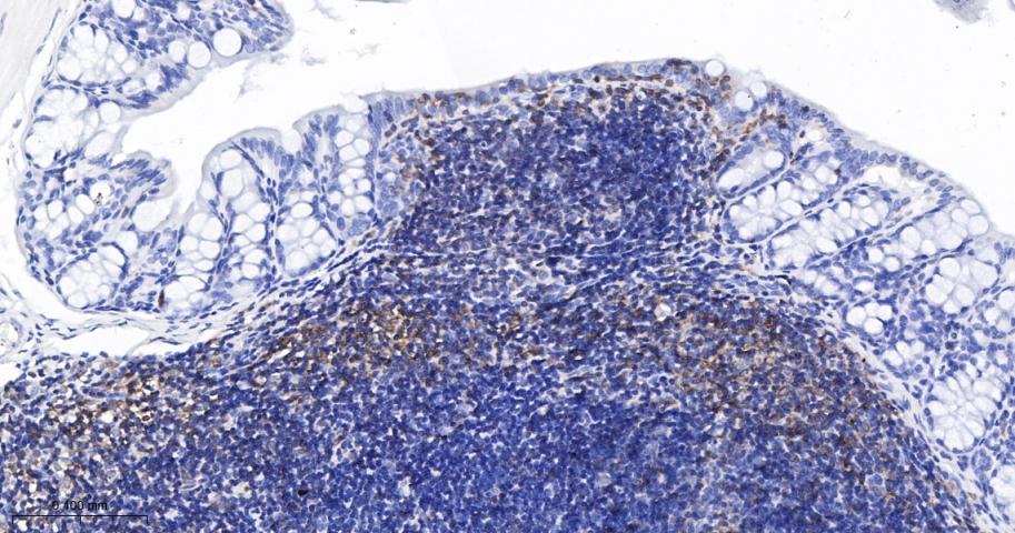 Paraformaldehyde-fixed, paraffin embedded Mouse Colon; Antigen retrieval by boiling in sodium citrate buffer (pH6.0) for 15 min; The section was incubated with LSP1 Monoclonal Antibody, Unconjugated (bsm-61255R) at 1:200 overnight at 4°C, followed by conjugation to the bs-0295G-HRP and DAB (C-0010) staining.