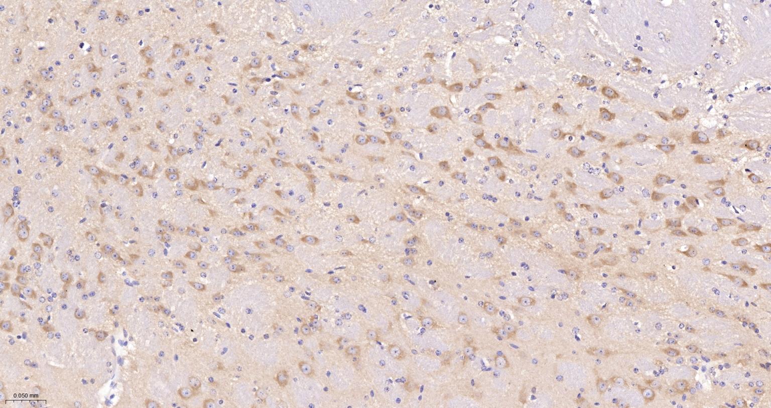 Paraformaldehyde-fixed, paraffin embedded Human Cerebrum; Antigen retrieval by boiling in sodium citrate buffer (pH6.0) for 15 min; The section was incubated with RALBP1 Monoclonal Antibody, Unconjugated (bsm-61265R) at 1:200 overnight at 4°C, followed by conjugation to the bs-0295G-HRP and DAB (C-0010) staining.