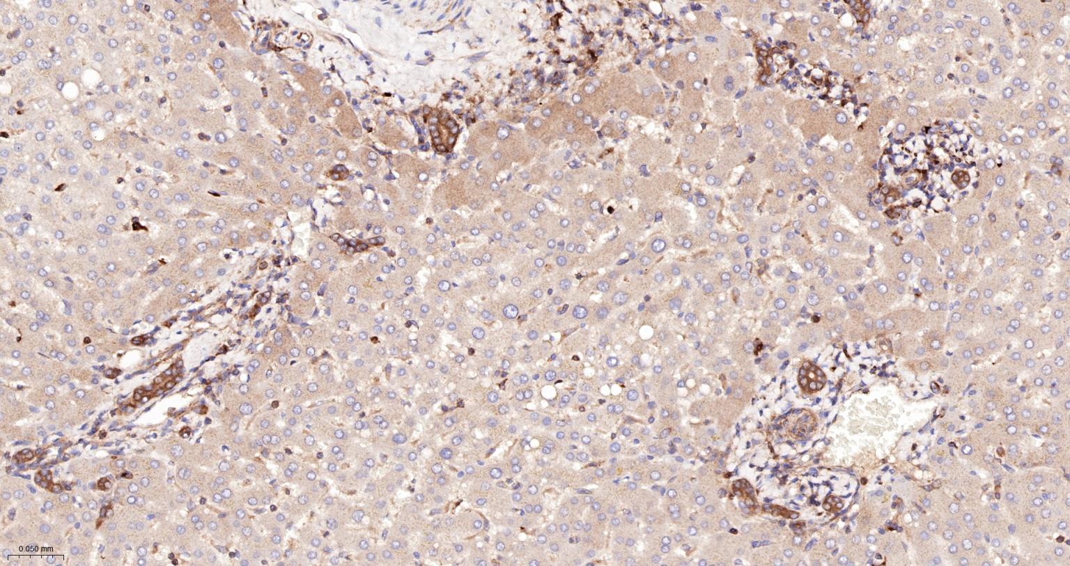 Paraformaldehyde-fixed, paraffin embedded Human Liver; Antigen retrieval by boiling in sodium citrate buffer (pH6.0) for 15 min; The section was incubated with RALBP1 Monoclonal Antibody, Unconjugated (bsm-61265R) at 1:200 overnight at 4°C, followed by conjugation to the bs-0295G-HRP and DAB (C-0010) staining.