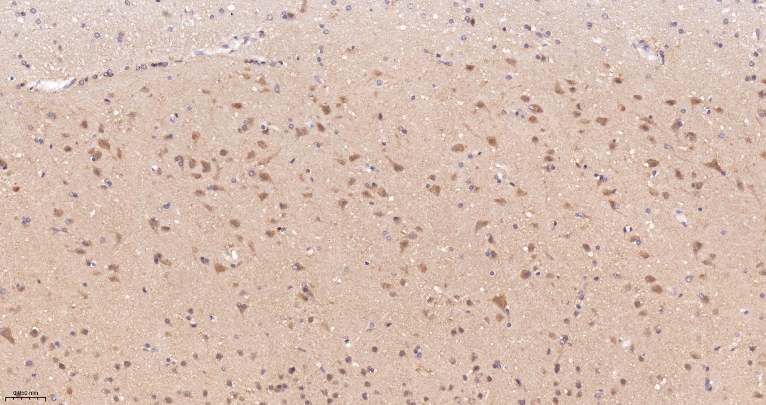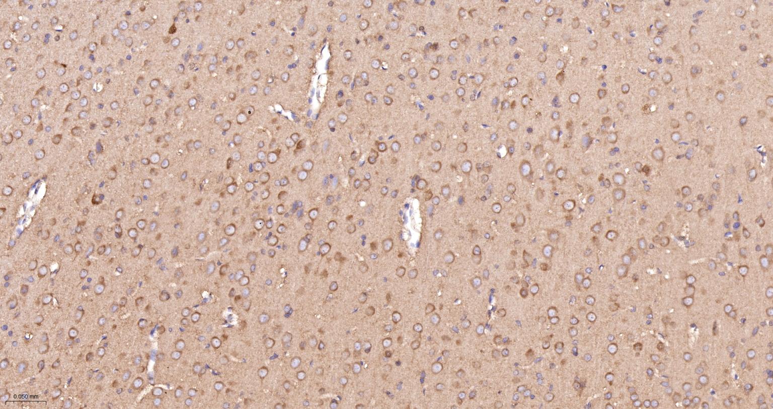 Paraformaldehyde-fixed, paraffin embedded Rat Cerebrum; Antigen retrieval by boiling in sodium citrate buffer (pH6.0) for 15 min; The section was incubated with RALBP1 Monoclonal Antibody, Unconjugated (bsm-61265R) at 1:200 overnight at 4°C, followed by conjugation to the bs-0295G-HRP and DAB (C-0010) staining.