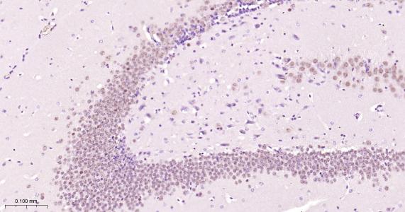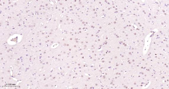 Paraformaldehyde-fixed, paraffin embedded Rat Cerebrum; Antigen retrieval by boiling in sodium citrate buffer (pH6.0) for 15 min; Antibody incubation hnRNP C1/C2 Monoclonal Antibody, Unconjugated(bsm-61267R) at 1:200 overnight at 4°C, followed by conjugation to the bs-0295G-HRP and DAB (C-0010) staining.