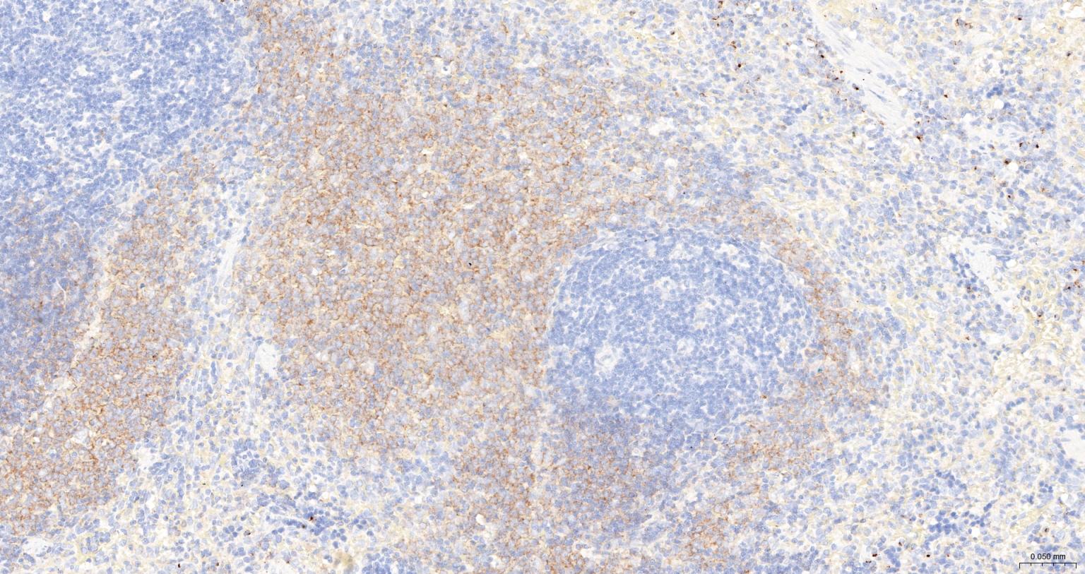 Paraformaldehyde-fixed, paraffin embedded Human Spleen; Antigen retrieval by boiling in sodium citrate buffer (pH6.0) for 15 min; The section was incubated with VAV2 Monoclonal Antibody, Unconjugated (bsm-61286R) at 1:200 overnight at 4°C, followed by conjugation to the bs-0295G-HRP and DAB (C-0010) staining.