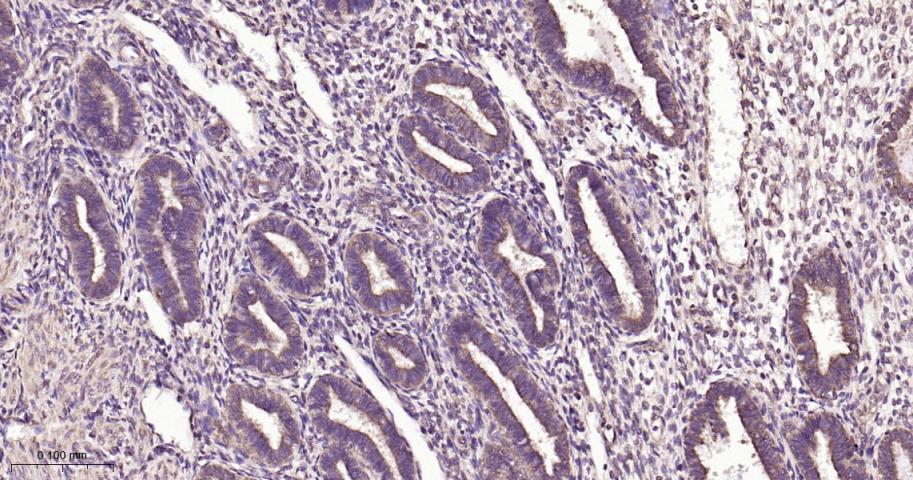 Paraformaldehyde-fixed, paraffin embedded Human Endometrial; Antigen retrieval by boiling in sodium citrate buffer (pH6.0) for 15 min; Antibody incubation with DKK1 Monoclonal Antibody, Unconjugated(bsm-61289R) at 1:200 overnight at 4°C, followed by conjugation to the bs-0295G-HRP and DAB (C-0010) staining.