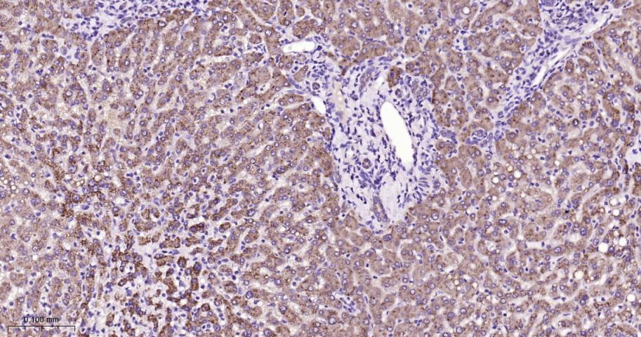 Paraformaldehyde-fixed, paraffin embedded Human Liver; Antigen retrieval by boiling in sodium citrate buffer (pH6.0) for 15 min; Antibody incubation with DKK1 Monoclonal Antibody, Unconjugated(bsm-61289R) at 1:200 overnight at 4°C, followed by conjugation to the bs-0295G-HRP and DAB (C-0010) staining.