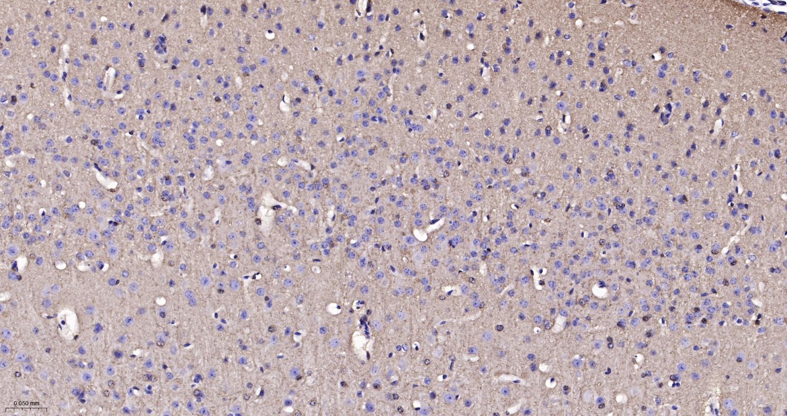 Paraformaldehyde-fixed, paraffin embedded Mouse Cerebrum; Antigen retrieval by boiling in sodium citrate buffer (pH6.0) for 15 min; The section was incubated with BIN1 Monoclonal Antibody, Unconjugated (bsm-61296R) at 1:200 overnight at 4°C, followed by conjugation to the bs-0295G-HRP and DAB (C-0010) staining.