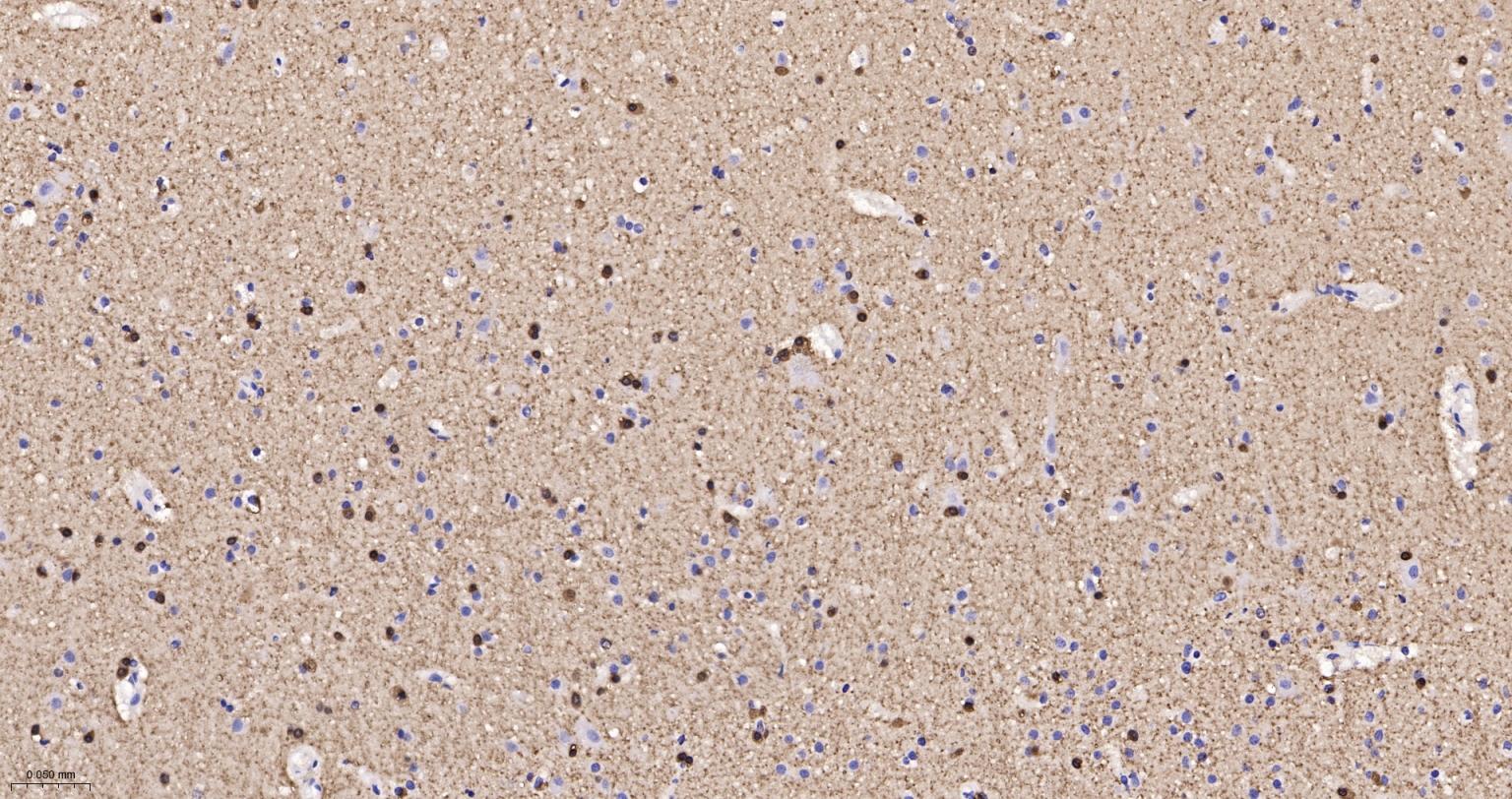 Paraformaldehyde-fixed, paraffin embedded Human Cerebrum; Antigen retrieval by boiling in sodium citrate buffer (pH6.0) for 15 min; The section was incubated with BIN1 Monoclonal Antibody, Unconjugated (bsm-61296R) at 1:200 overnight at 4°C, followed by conjugation to the bs-0295G-HRP and DAB (C-0010) staining.