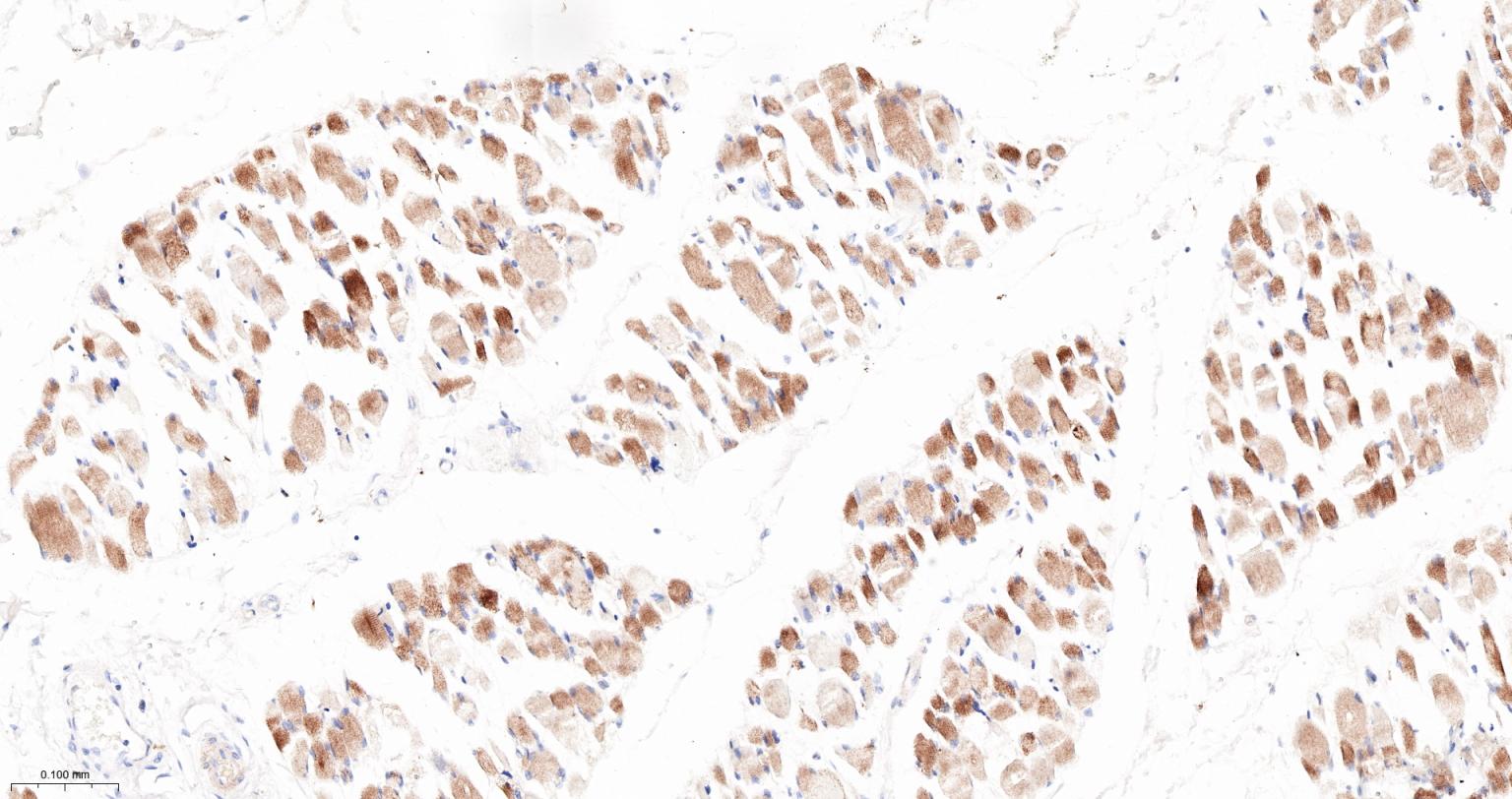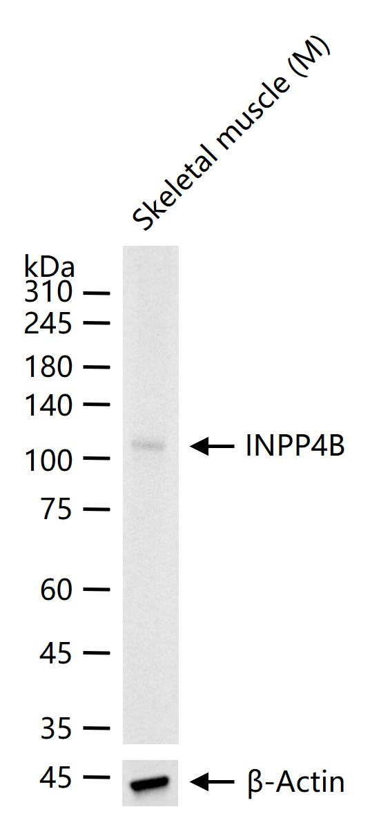 Paraformaldehyde-fixed, paraffin embedded Human Skeletal muscle; Antigen retrieval by boiling in sodium citrate buffer (pH6.0) for 15 min; The section was incubated with INPP4B Monoclonal Antibody, Unconjugated (bsm-61303R) at 1:200 overnight at 4°C, followed by conjugation to the bs-0295G-HRP and DAB (C-0010) staining.