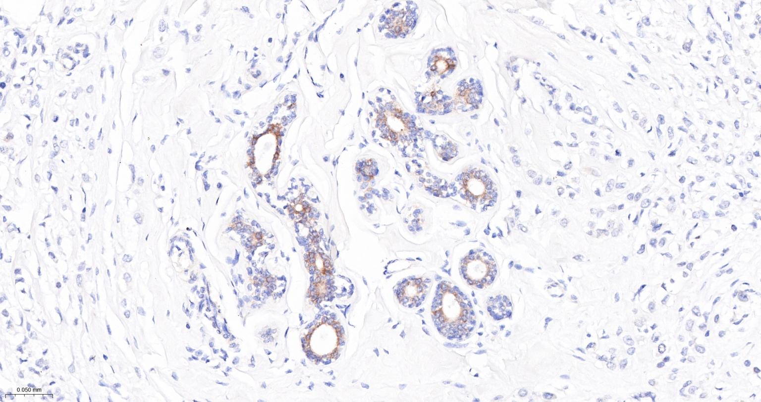 Paraformaldehyde-fixed, paraffin embedded Human Breast Cancer; Antigen retrieval by boiling in sodium citrate buffer (pH6.0) for 15 min; The section was incubated with INPP4B Monoclonal Antibody, Unconjugated (bsm-61303R) at 1:200 overnight at 4°C, followed by conjugation to the bs-0295G-HRP and DAB (C-0010) staining.