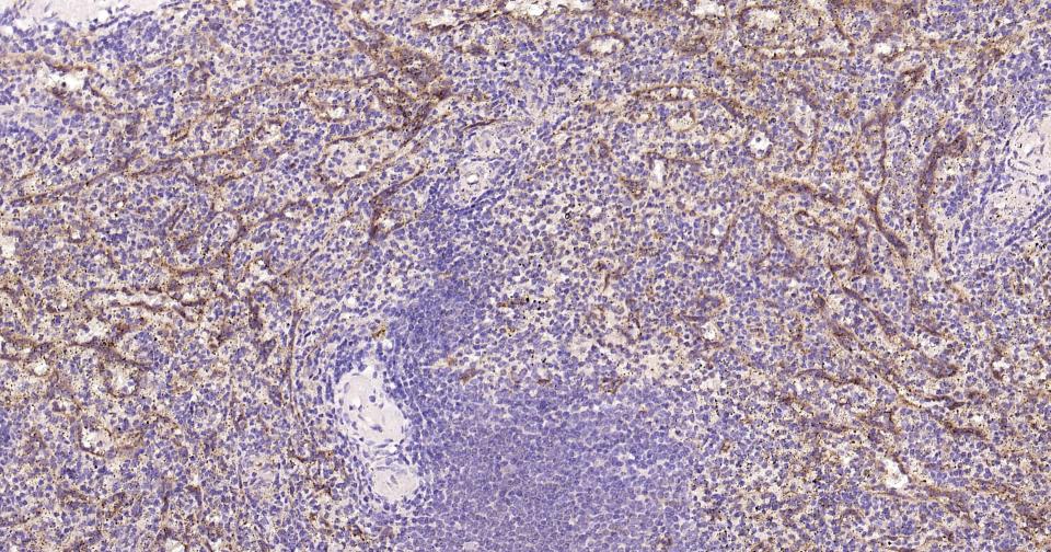 Paraformaldehyde-fixed, paraffin embedded Human Spleen; Antigen retrieval by boiling in sodium citrate buffer (pH6.0) for 15 min; Antibody incubation with CD36 Monoclonal Antibody, Unconjugated(bsm-61310R) at 1:200 overnight at 4°C, followed by conjugation to the SP Kit (Rabbit, SP-0023) and DAB (C-0010) staining.