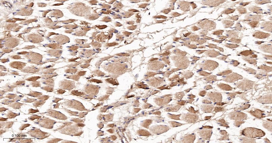 Paraformaldehyde-fixed, paraffin embedded Human Skeletal muscle; Antigen retrieval by boiling in sodium citrate buffer (pH6.0) for 15 min; The section was incubated with MEK7 Monoclonal Antibody, Unconjugated (bsm-61322R) at 1:200 overnight at 4°C, followed by conjugation to the bs-0295G-HRP and DAB (C-0010) staining.