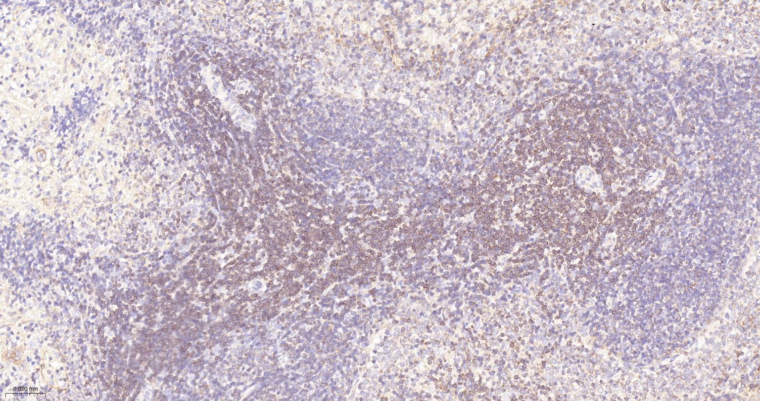 Paraformaldehyde-fixed, paraffin embedded Rat Spleen; Antigen retrieval by boiling in sodium citrate buffer (pH6.0) for 15 min; The section was incubated with Stromal interaction molecule 1 Monoclonal Antibody, Unconjugated (bsm-61325R) at 1:200 overnight at 4°C, followed by conjugation to the bs-0295G-HRP and DAB (C-0010) staining.
