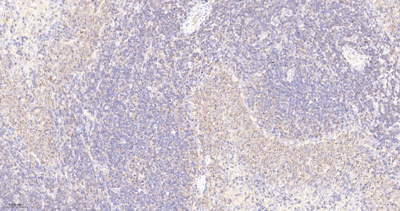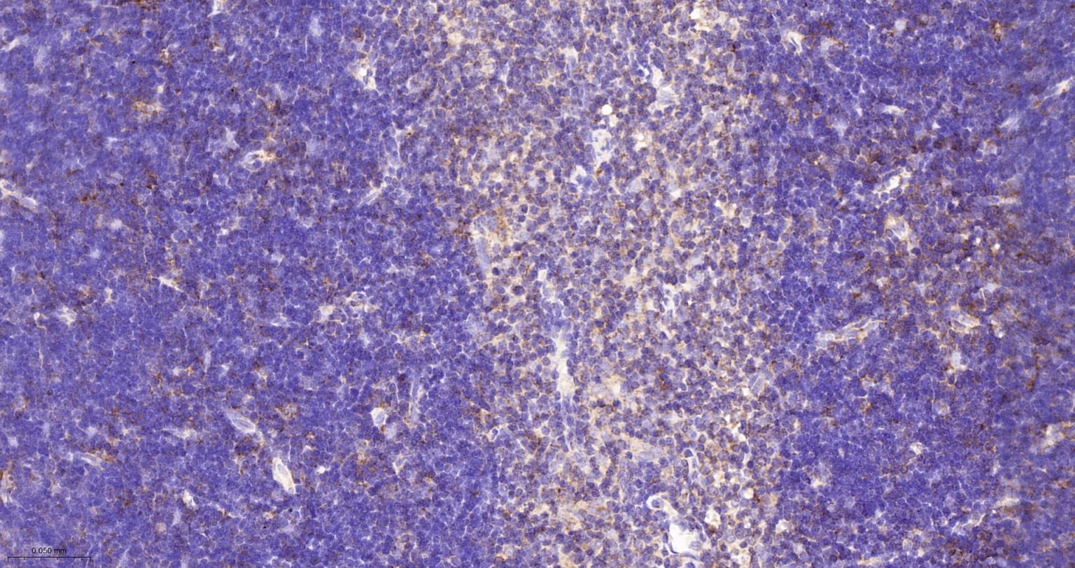 Paraformaldehyde-fixed, paraffin embedded Rat Thymus; Antigen retrieval by boiling in sodium citrate buffer (pH6.0) for 15 min; The section was incubated with Ubiquitin D Monoclonal Antibody, Unconjugated (bsm-61330R) at 1:200 overnight at 4°C, followed by conjugation to the bs-0295G-HRP and DAB (C-0010) staining.
