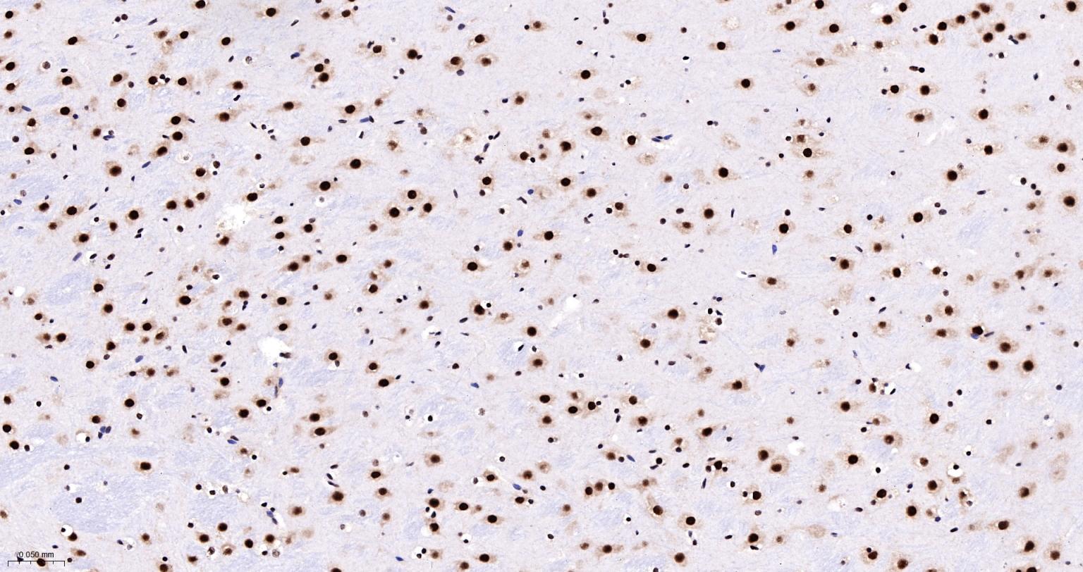 Paraformaldehyde-fixed, paraffin embedded Rat Cerebrum; Antigen retrieval by boiling in sodium citrate buffer (pH6.0) for 15 min; The section was incubated with CDC5L Monoclonal Antibody, Unconjugated (bsm-61335R) at 1:200 overnight at 4°C, followed by conjugation to the bs-0295G-HRP and DAB (C-0010) staining.