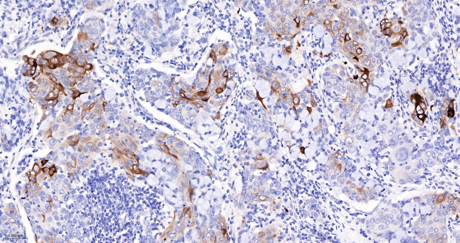 Paraformaldehyde-fixed, paraffin embedded Human Cervical Cancer; Antigen retrieval by boiling in sodium citrate buffer (pH6.0) for 15 min; The section was incubated with HSP22 Monoclonal Antibody, Unconjugated (bsm-61338R) at 1:200 overnight at 4°C, followed by conjugation to the bs-0295G-HRP and DAB (C-0010) staining.