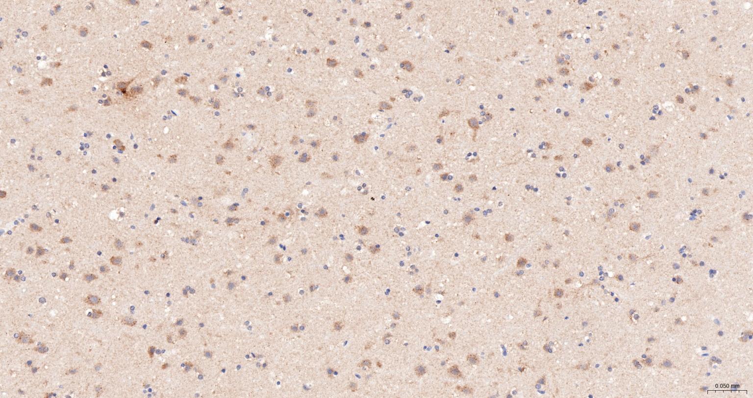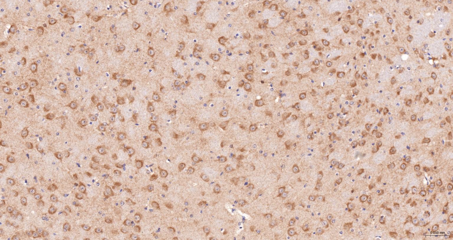 Paraformaldehyde-fixed, paraffin embedded Human Cerebrum; Antigen retrieval by boiling in sodium citrate buffer (pH6.0) for 15 min; The section was incubated with HSP105 Monoclonal Antibody, Unconjugated (bsm-61340R) at 1:200 overnight at 4°C, followed by conjugation to the bs-0295G-HRP and DAB (C-0010) staining.