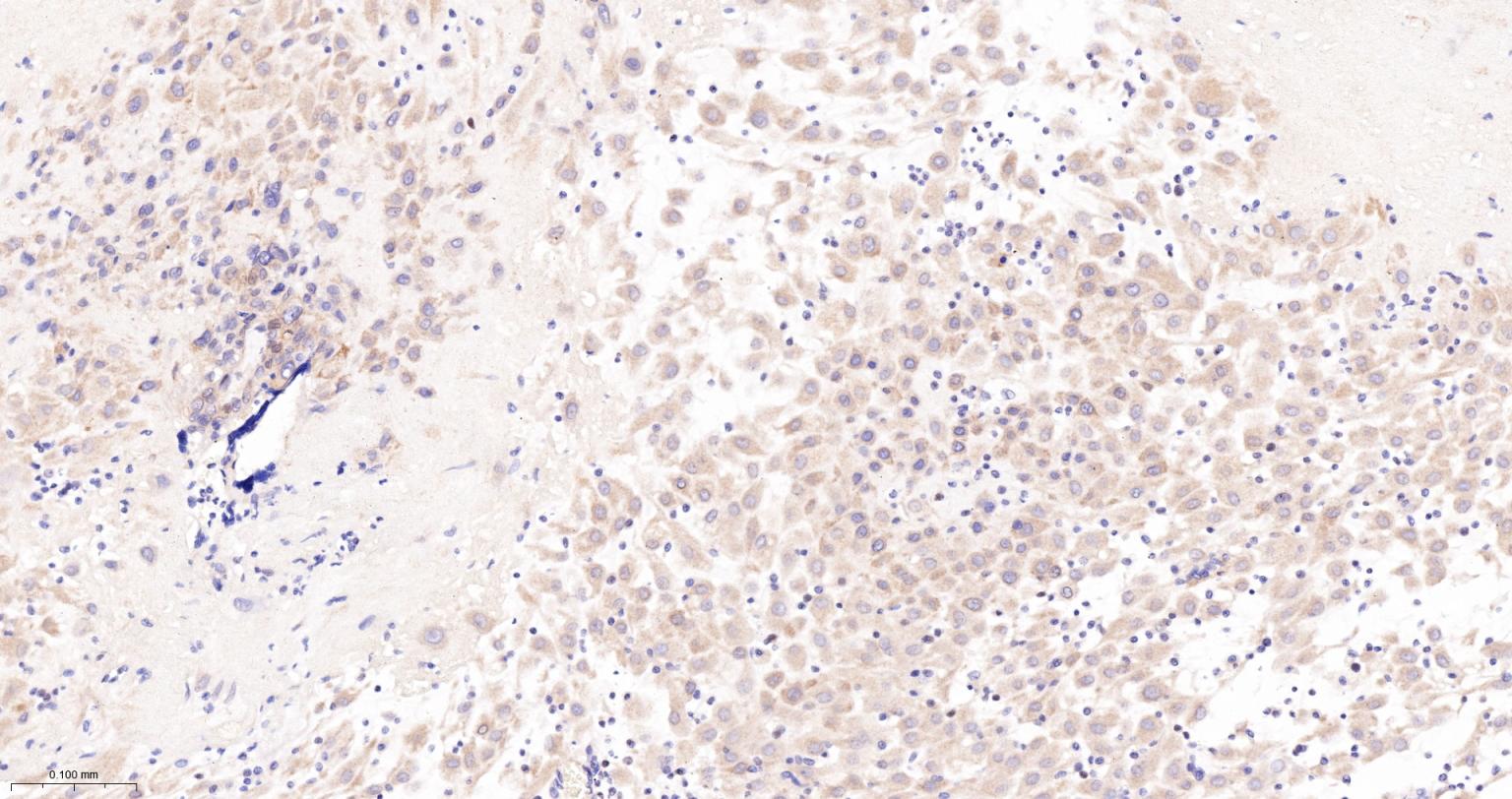 Paraformaldehyde-fixed, paraffin embedded Human Placenta; Antigen retrieval by boiling in sodium citrate buffer (pH6.0) for 15 min; The section was incubated with Caspase 2 Monoclonal Antibody, Unconjugated (bsm-61341R) at 1:200 overnight at 4°C, followed by conjugation to the bs-0295G-HRP and DAB (C-0010) staining.