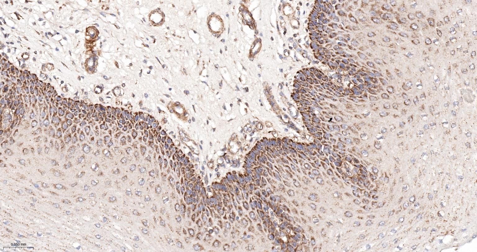 Paraformaldehyde-fixed, paraffin embedded Human Esophagus; Antigen retrieval by boiling in sodium citrate buffer (pH6.0) for 15 min; The section was incubated with HSP47 Monoclonal Antibody, Unconjugated (bsm-61347R) at 1:200 overnight at 4°C, followed by conjugation to the bs-0295G-HRP and DAB (C-0010) staining.