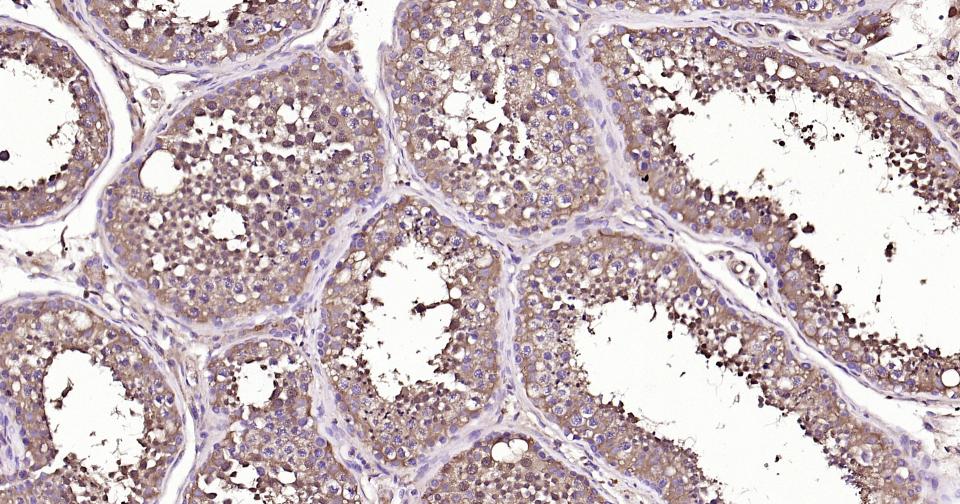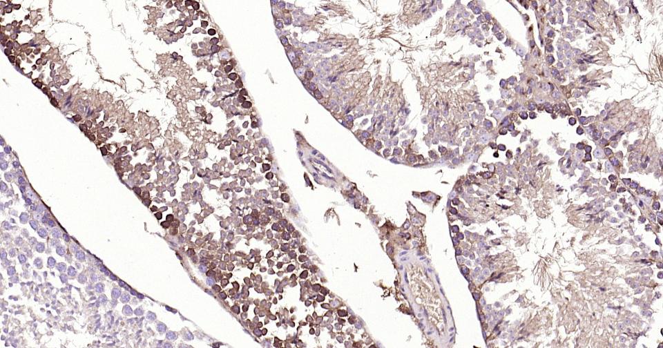 Paraformaldehyde-fixed, paraffin embedded Mouse Testicles; Antigen retrieval by boiling in sodium citrate buffer (pH6.0) for 15 min; Antibody incubation with Cystatin-C Monoclonal Antibody, Unconjugated(bsm-61363R) at 1:200 overnight at 4°C, followed by conjugation to the SP Kit (Rabbit, SP-0023)and DAB (C-0010) staining.