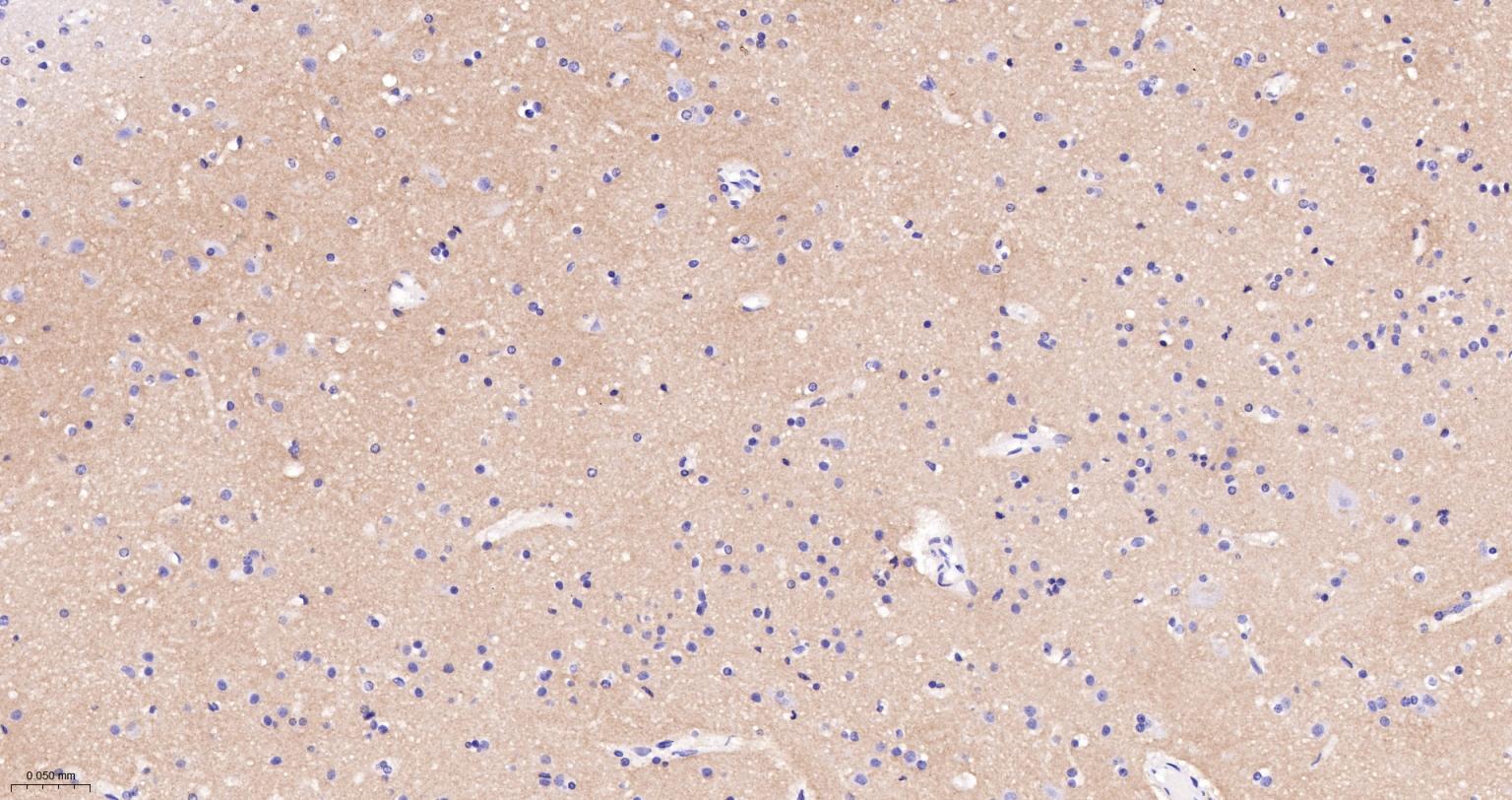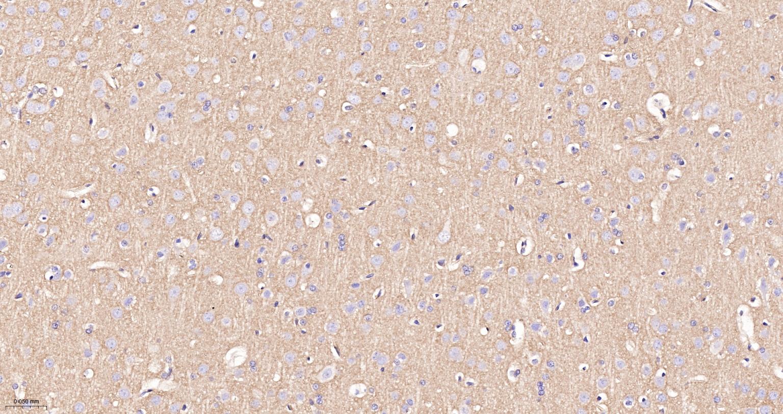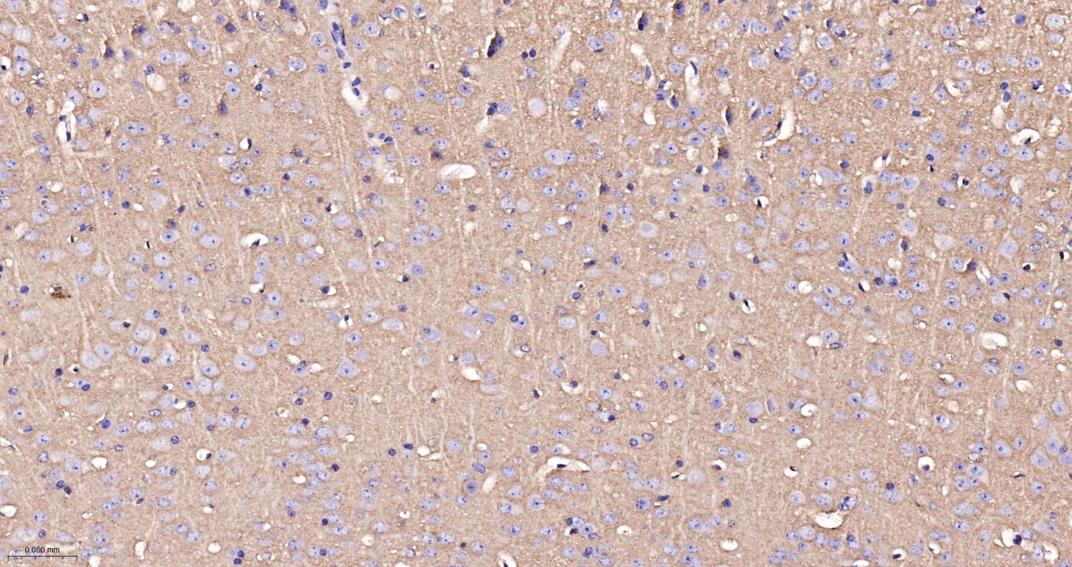 Paraformaldehyde-fixed, paraffin embedded Rat Cerebrum; Antigen retrieval by boiling in sodium citrate buffer (pH6.0) for 15 min; The section was incubated with GRM2 Monoclonal Antibody, Unconjugated (bsm-61365R) at 1:200 overnight at 4°C, followed by conjugation to the bs-0295G-HRP and DAB (C-0010) staining.