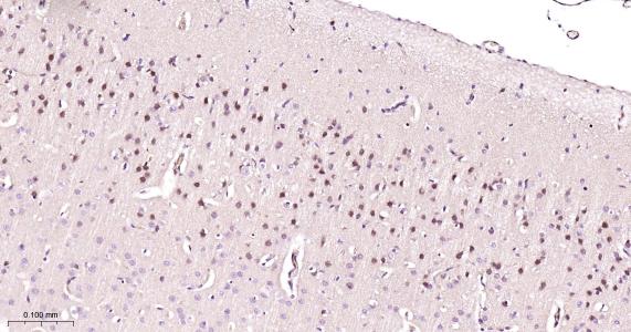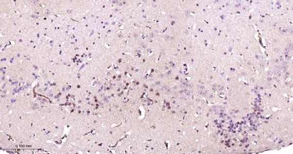 Paraformaldehyde-fixed, paraffin embedded Rat Cerebrum; Antigen retrieval by boiling in sodium citrate buffer (pH6.0) for 15 min; Antibody incubation with TLS/FUS Monoclonal Antibody, Unconjugated(bsm-61371R) at 1:200 overnight at 4°C, followed by conjugation to the bs-0295G-HRP and DAB (C-0010) staining.