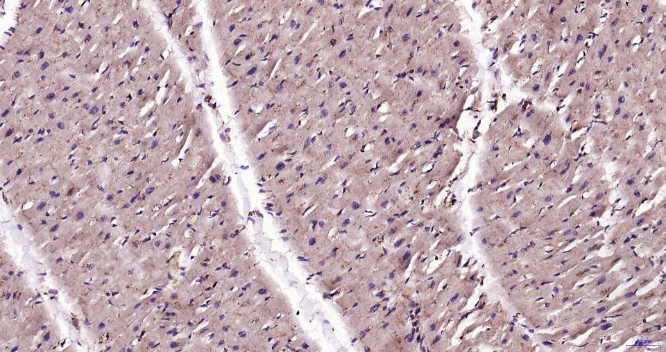 Paraformaldehyde-fixed, paraffin embedded Human Heart; Antigen retrieval by boiling in sodium citrate buffer (pH6.0) for 15 min; Antibody incubation with LAMP1 Monoclonal Antibody, Unconjugated(bsm-61375R) at 1:200 overnight at 4°C, followed by conjugation to the SP Kit (Rabbit, SP-0023)and DAB (C-0010) staining.