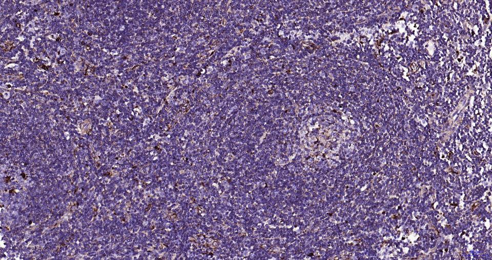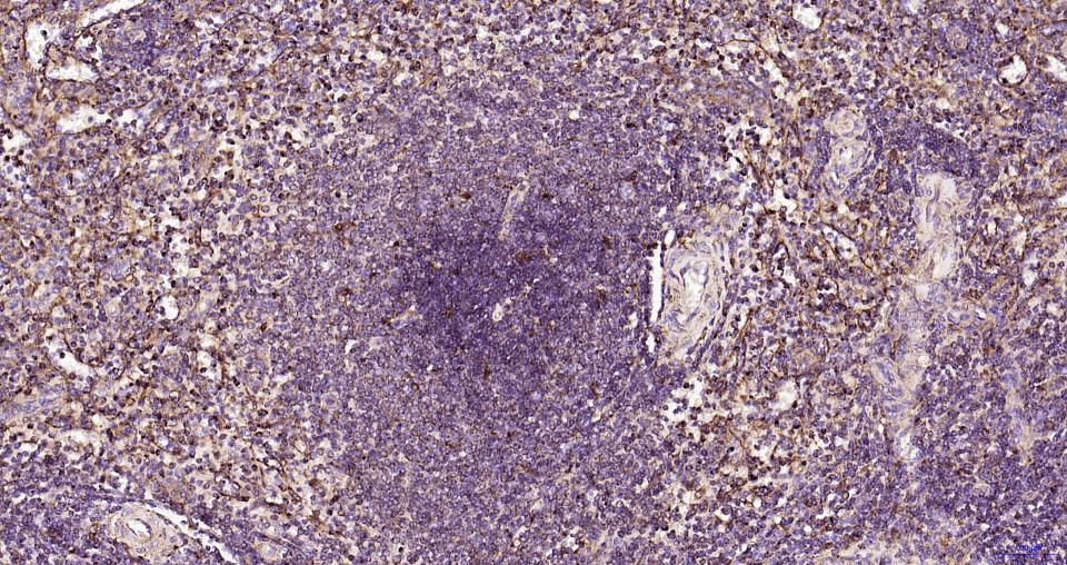 Paraformaldehyde-fixed, paraffin embedded Human Spleen; Antigen retrieval by boiling in sodium citrate buffer (pH6.0) for 15 min; Antibody incubation with LAMP1 Monoclonal Antibody, Unconjugated(bsm-61375R) at 1:200 overnight at 4°C, followed by conjugation to the SP Kit (Rabbit, SP-0023)and DAB (C-0010) staining.