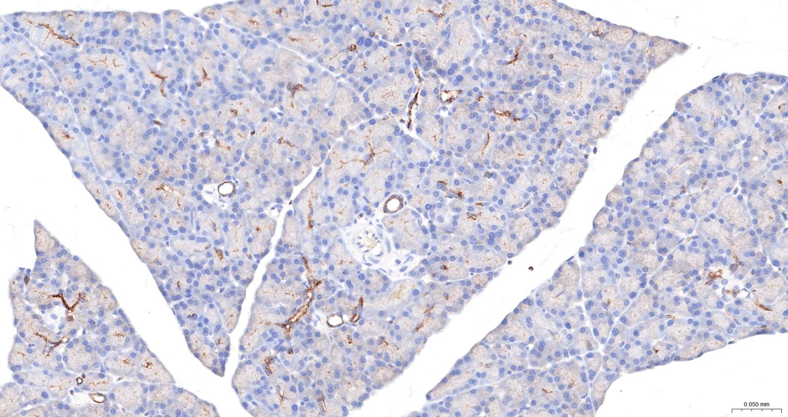 Paraformaldehyde-fixed, paraffin embedded Rat Pancreas; Antigen retrieval by boiling in sodium citrate buffer (pH6.0) for 15 min; The section was incubated with NHERF1 Monoclonal Antibody, Unconjugated (bsm-61378R) at 1:200 overnight at 4°C, followed by conjugation to the bs-0295G-HRP and DAB (C-0010) staining.