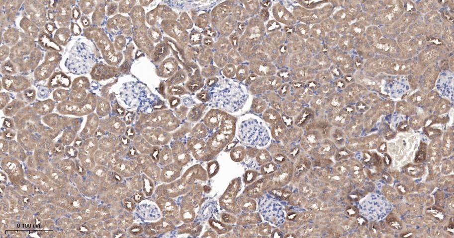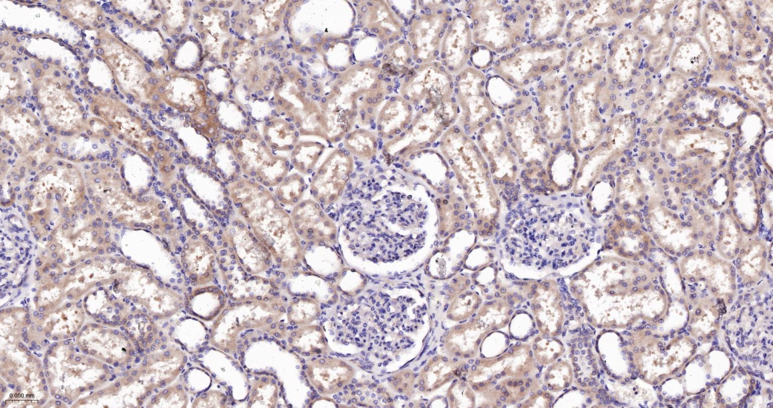 Paraformaldehyde-fixed, paraffin embedded Rat Kidney; Antigen retrieval by boiling in sodium citrate buffer (pH6.0) for 15 min; The section was incubated with IDE Monoclonal Antibody, Unconjugated (bsm-61379R) at 1:200 overnight at 4°C, followed by conjugation to the bs-0295G-HRP and DAB (C-0010) staining.