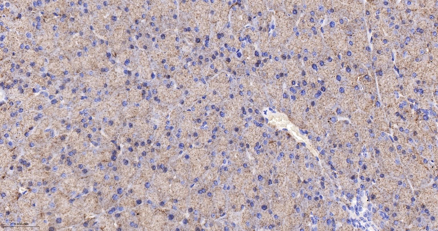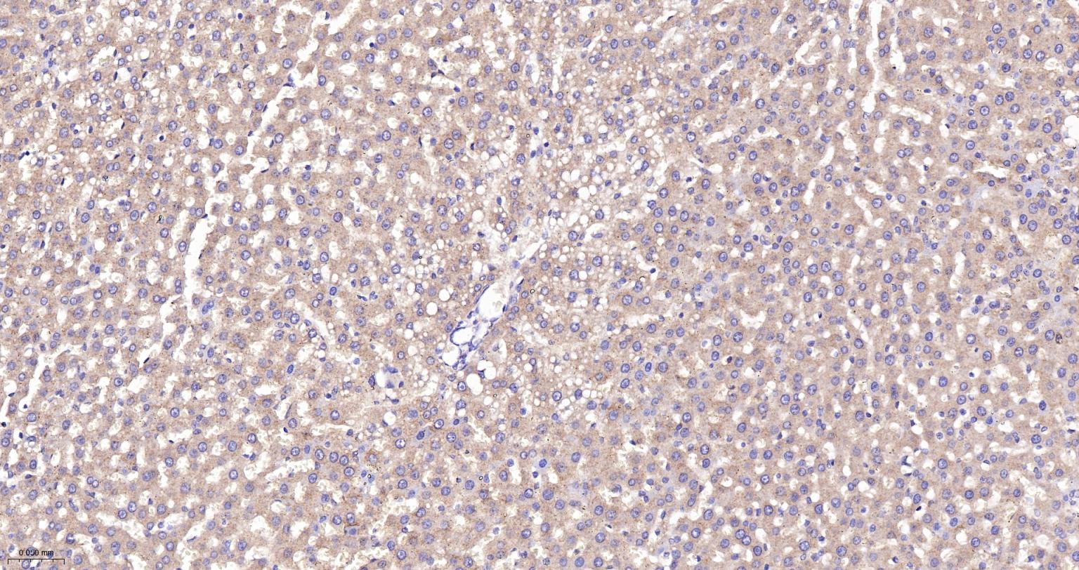 Paraformaldehyde-fixed, paraffin embedded Rat Liver; Antigen retrieval by boiling in sodium citrate buffer (pH6.0) for 15 min; The section was incubated with VAMP8 Monoclonal Antibody, Unconjugated (bsm-61388R) at 1:200 overnight at 4°C, followed by conjugation to the bs-0295G-HRP and DAB (C-0010) staining