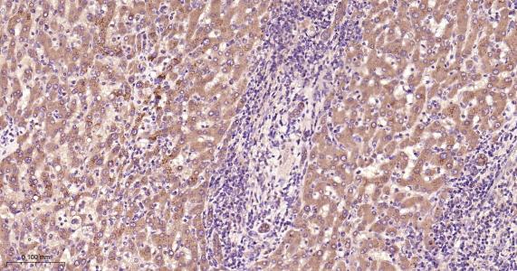 Paraformaldehyde-fixed, paraffin embedded Human Liver; Antigen retrieval by boiling in sodium citrate buffer (pH6.0) for 15 min; Antibody incubation with PDIA6 Monoclonal Antibody, Unconjugated(bsm-61392R) at 1:200 overnight at 4°C, followed by conjugation to the bs-0295G-HRP and DAB (C-0010) staining.