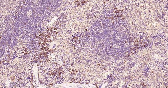 Paraformaldehyde-fixed, paraffin embedded Rat Spleen; Antigen retrieval by boiling in sodium citrate buffer (pH6.0) for 15 min; Antibody incubation with PDIA6 Monoclonal Antibody, Unconjugated(bsm-61392R) at 1:200 overnight at 4°C, followed by conjugation to the bs-0295G-HRP and DAB (C-0010) staining.