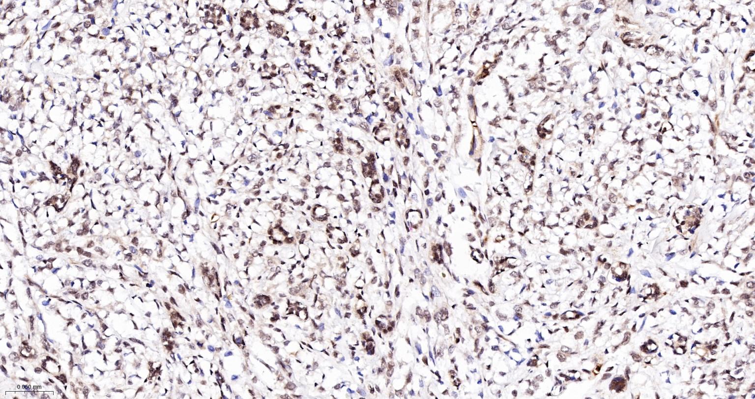 Paraformaldehyde-fixed, paraffin embedded Human Breast Cancer; Antigen retrieval by boiling in sodium citrate buffer (pH6.0) for 15 min; The section was incubated with CTCF Monoclonal Antibody, Unconjugated (bsm-61422R) at 1:200 overnight at 4°C, followed by conjugation to the bs-0295G-HRP and DAB (C-0010) staining.