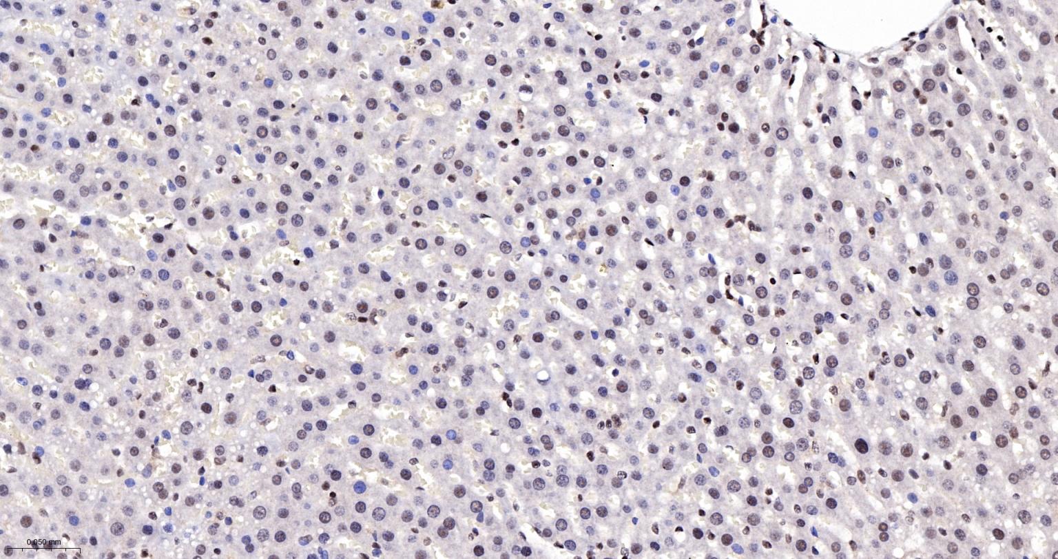 Paraformaldehyde-fixed, paraffin embedded Mouse Liver; Antigen retrieval by boiling in sodium citrate buffer (pH6.0) for 15 min; The section was incubated with CTCF Monoclonal Antibody, Unconjugated (bsm-61422R) at 1:200 overnight at 4°C, followed by conjugation to the bs-0295G-HRP and DAB (C-0010) staining.