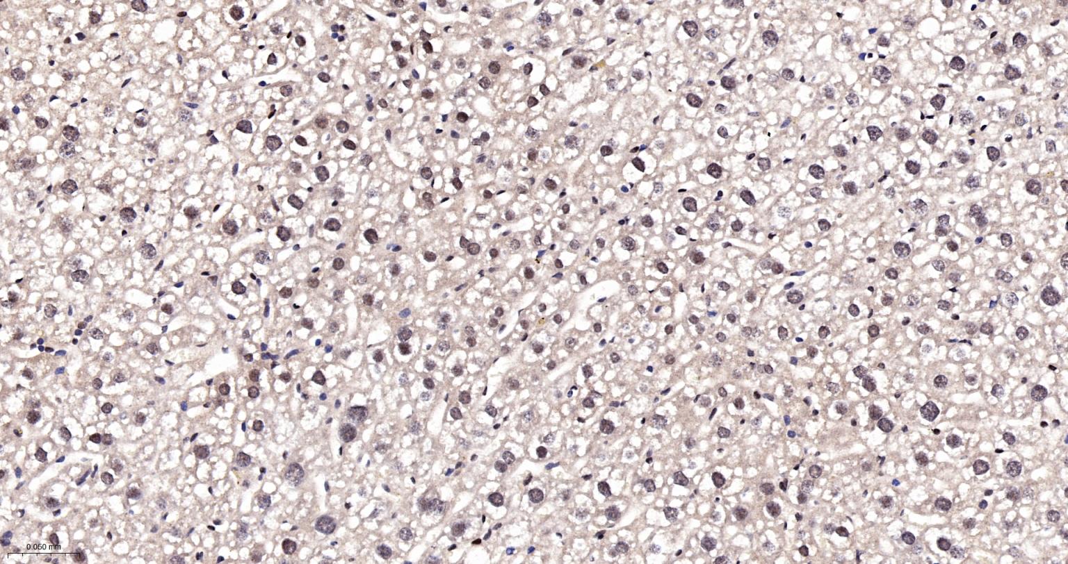 Paraformaldehyde-fixed, paraffin embedded Rat Liver; Antigen retrieval by boiling in sodium citrate buffer (pH6.0) for 15 min; The section was incubated with CTCF Monoclonal Antibody, Unconjugated (bsm-61422R) at 1:200 overnight at 4°C, followed by conjugation to the bs-0295G-HRP and DAB (C-0010) staining.