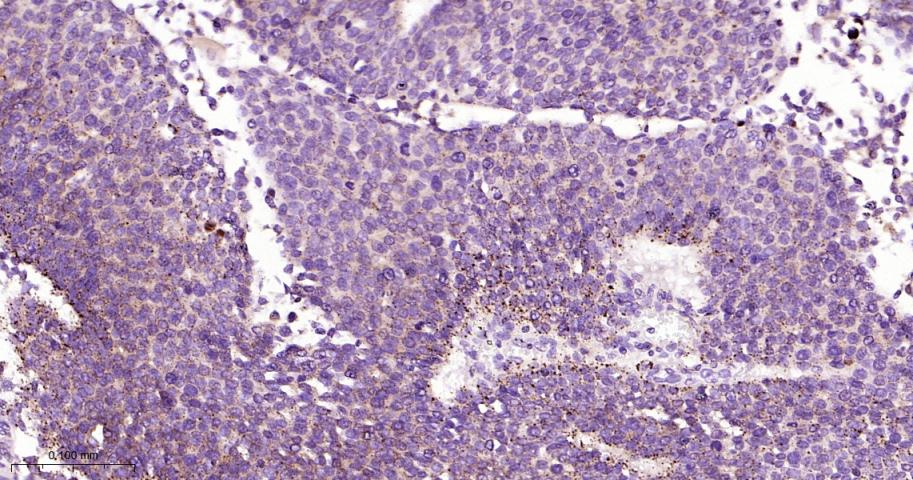 Paraformaldehyde-fixed, paraffin embedded Human Invasive urothelial carcinoma of the bladder; Antigen retrieval by boiling in sodium citrate buffer (pH6.0) for 15 min; The section was incubated with Cathepsin L/V/K/H Monoclonal Antibody, Unconjugated (bsm-61433R) at 1:200 overnight at 4°C, followed by conjugation to the bs-0295G-HRP and DAB (C-0010) staining.