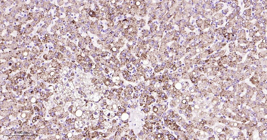 Paraformaldehyde-fixed, paraffin embedded Human Liver; Antigen retrieval by boiling in sodium citrate buffer (pH6.0) for 15 min; The section was incubated with Cathepsin L/V/K/H Monoclonal Antibody, Unconjugated (bsm-61433R) at 1:200 overnight at 4°C, followed by conjugation to the bs-0295G-HRP and DAB (C-0010) staining.