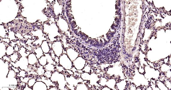 Paraformaldehyde-fixed, paraffin embedded Mouse Lung; Antigen retrieval by boiling in sodium citrate buffer (pH6.0) for 15 min; Antibody incubation with VCP Monoclonal Antibody, Unconjugated(bsm-61451R) at 1:200 overnight at 4°C, followed by conjugation to the bs-0295G-HRP and DAB (C-0010) staining.