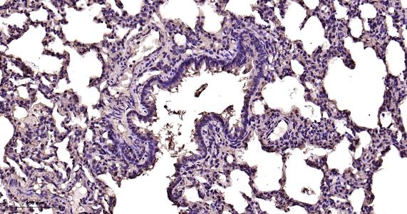 Paraformaldehyde-fixed, paraffin embedded Rat Lung; Antigen retrieval by boiling in sodium citrate buffer (pH6.0) for 15 min; Antibody incubation with VCP Monoclonal Antibody, Unconjugated(bsm-61451R) at 1:200 overnight at 4°C, followed by conjugation to the bs-0295G-HRP and DAB (C-0010) staining.