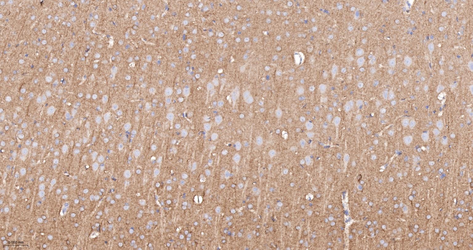 Paraformaldehyde-fixed, paraffin embedded Rat Cerebrum; Antigen retrieval by boiling in sodium citrate buffer (pH6.0) for 15 min; The section was incubated with PRKAR2B Monoclonal Antibody, Unconjugated (bsm-61473R) at 1:200 overnight at 4°C, followed by conjugation to the bs-0295G-HRP and DAB (C-0010) staining.