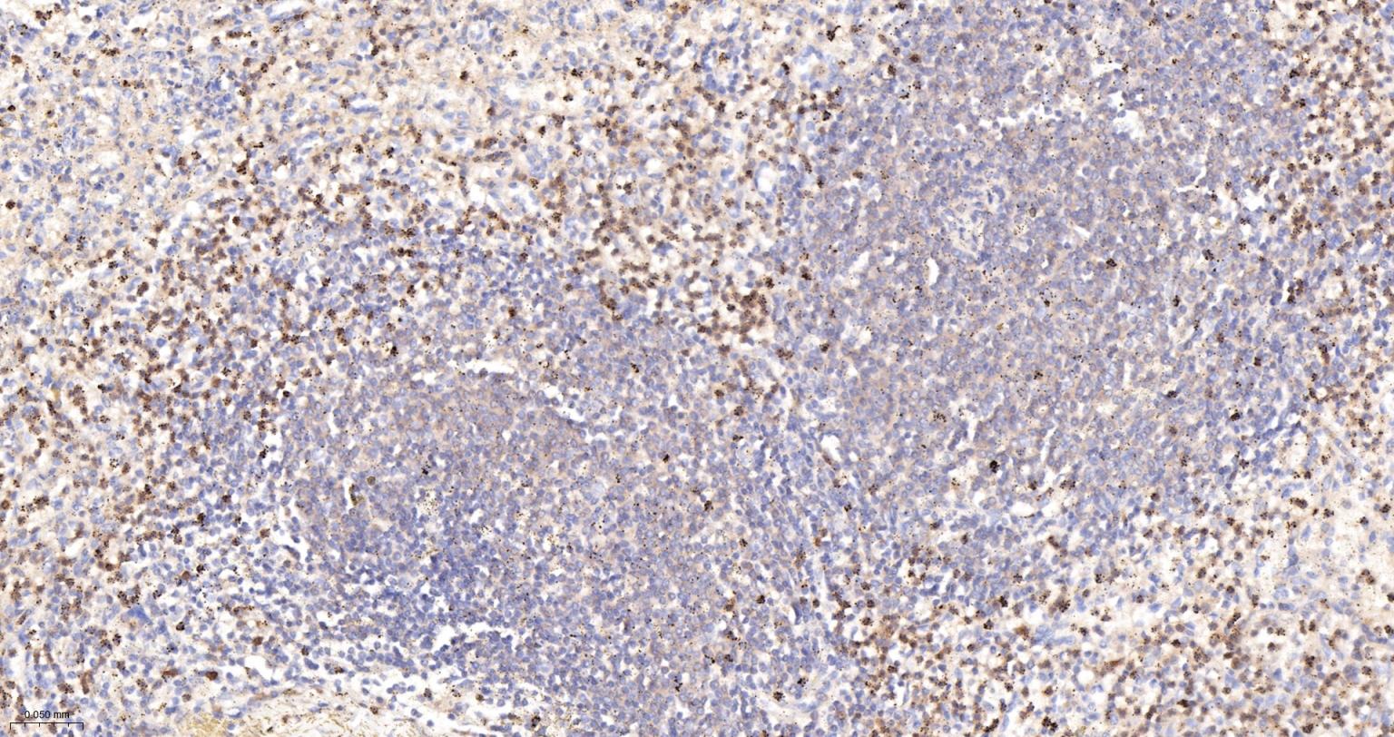 Paraformaldehyde-fixed, paraffin embedded Human Spleen; Antigen retrieval by boiling in sodium citrate buffer (pH6.0) for 15 min; Antibody incubation Glucose 6 Phosphate Dehydrogenase Monoclonal Antibody, Unconjugated(bsm-61479R) at 1:200 overnight at 4°C, followed by conjugation to the bs-0295G-HRP and DAB (C-0010) staining.
