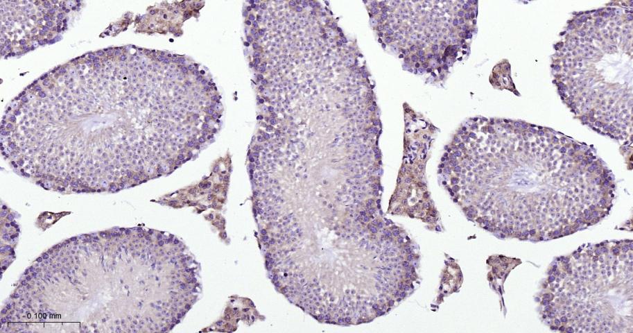 Paraformaldehyde-fixed, paraffin embedded Mouse Testicles; Antigen retrieval by boiling in sodium citrate buffer (pH6.0) for 15 min; Antibody incubation with Clathrin heavy chain Monoclonal Antibody, Unconjugated(bsm-61487R) at 1:200 overnight at 4°C, followed by conjugation to the bs-0295G-HRP and DAB (C-0010) staining.