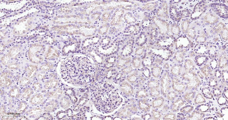 Paraformaldehyde-fixed, paraffin embedded Rat Kidney; Antigen retrieval by boiling in sodium citrate buffer (pH6.0) for 15 min; Antibody incubation with Clathrin heavy chain Monoclonal Antibody, Unconjugated(bsm-61487R) at 1:200 overnight at 4°C, followed by conjugation to the bs-0295G-HRP and DAB (C-0010) staining.