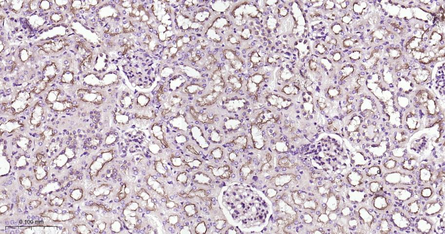 Paraformaldehyde-fixed, paraffin embedded Mouse Kidney; Antigen retrieval by boiling in sodium citrate buffer (pH6.0) for 15 min; Antibody incubation with Clathrin heavy chain Monoclonal Antibody, Unconjugated(bsm-61487R) at 1:200 overnight at 4°C, followed by conjugation to the bs-0295G-HRP and DAB (C-0010) staining.