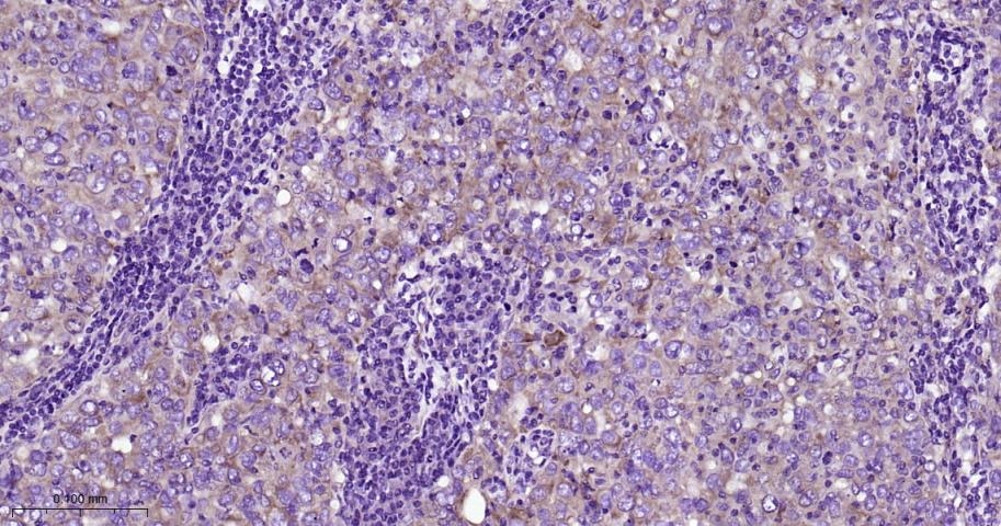 Paraformaldehyde-fixed, paraffin embedded Human Breast Cancer; Antigen retrieval by boiling in sodium citrate buffer (pH6.0) for 15 min; Antibody incubation with Clathrin heavy chain Monoclonal Antibody, Unconjugated(bsm-61487R) at 1:200 overnight at 4°C, followed by conjugation to the bs-0295G-HRP and DAB (C-0010) staining.