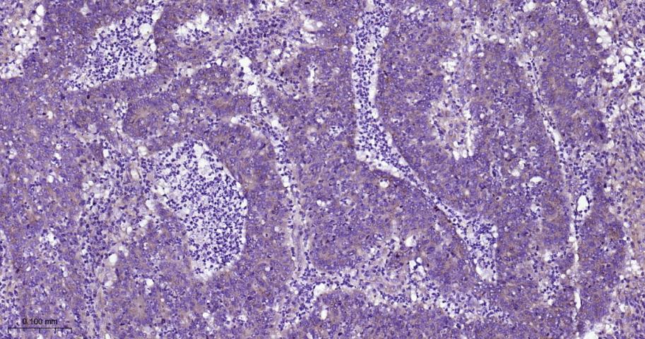 Paraformaldehyde-fixed, paraffin embedded Human Colon Cancer; Antigen retrieval by boiling in sodium citrate buffer (pH6.0) for 15 min; Antibody incubation with Clathrin heavy chain Monoclonal Antibody, Unconjugated(bsm-61487R) at 1:200 overnight at 4°C, followed by conjugation to the bs-0295G-HRP and DAB (C-0010) staining.