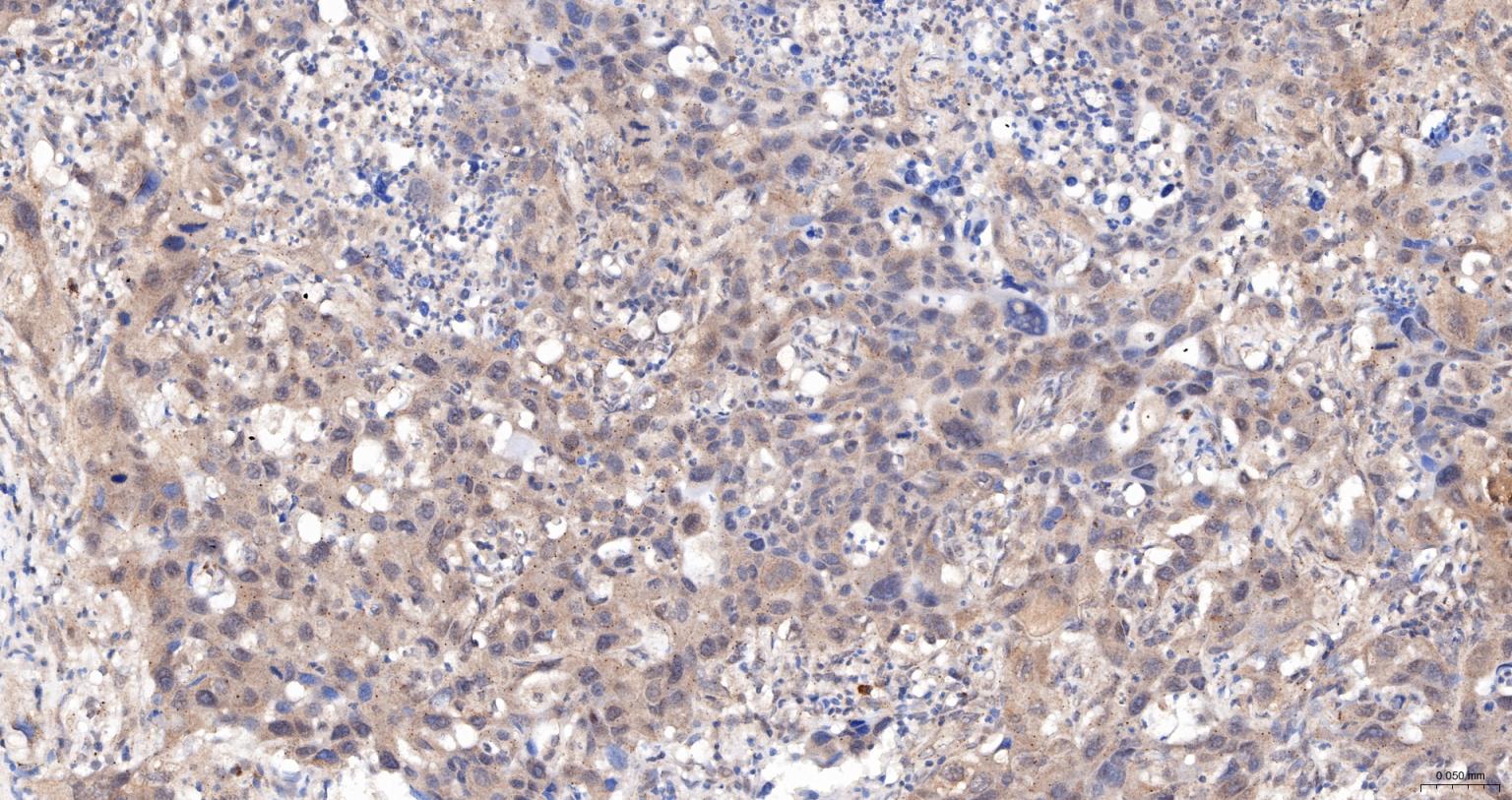 Paraformaldehyde-fixed, paraffin embedded Human Lung Cancer; Antigen retrieval by boiling in sodium citrate buffer (pH6.0) for 15 min; The section was incubated with Drosha Monoclonal Antibody, Unconjugated (bsm-61492R) at 1:200 overnight at 4°C, followed by conjugation to the bs-0295G-HRP and DAB (C-0010) staining.