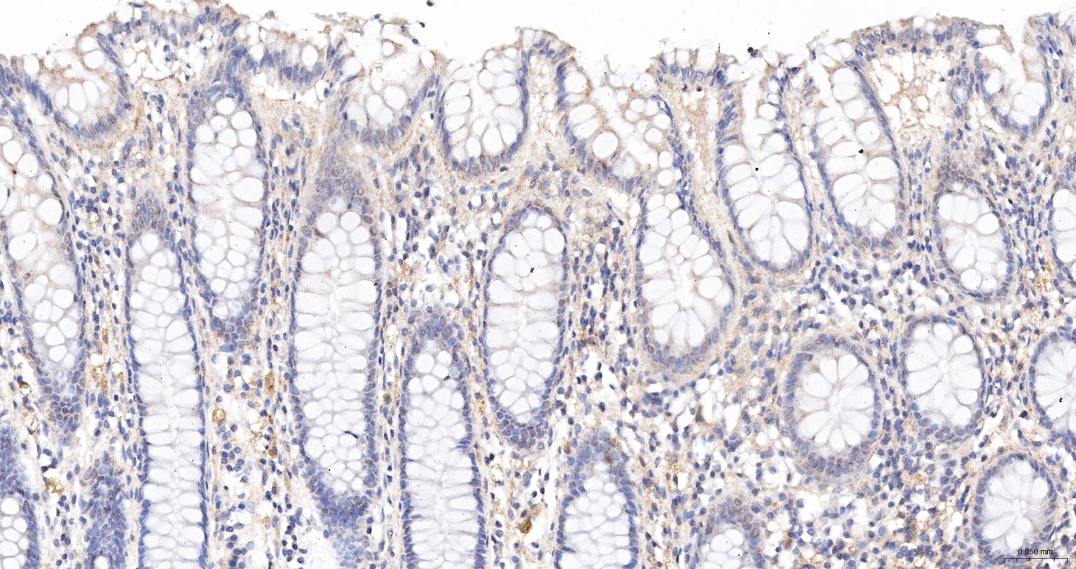 Paraformaldehyde-fixed, paraffin embedded Mouse Colon; Antigen retrieval by boiling in sodium citrate buffer (pH6.0) for 15 min; The section was incubated with Drosha Monoclonal Antibody, Unconjugated (bsm-61492R) at 1:200 overnight at 4°C, followed by conjugation to the bs-0295G-HRP and DAB (C-0010) staining.