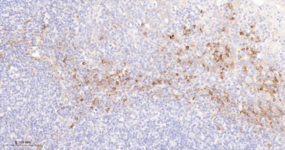 Paraformaldehyde-fixed, paraffin embedded Human Lymph; Antigen retrieval by boiling in sodium citrate buffer (pH6.0) for 15 min; The section was incubated with ITK Monoclonal Antibody, Unconjugated (bsm-61531R) at 1:200 overnight at 4°C, followed by conjugation to the bs-0295G-HRP and DAB (C-0010) staining.