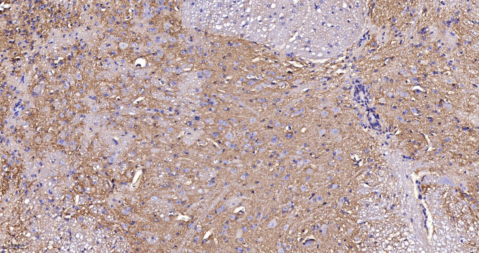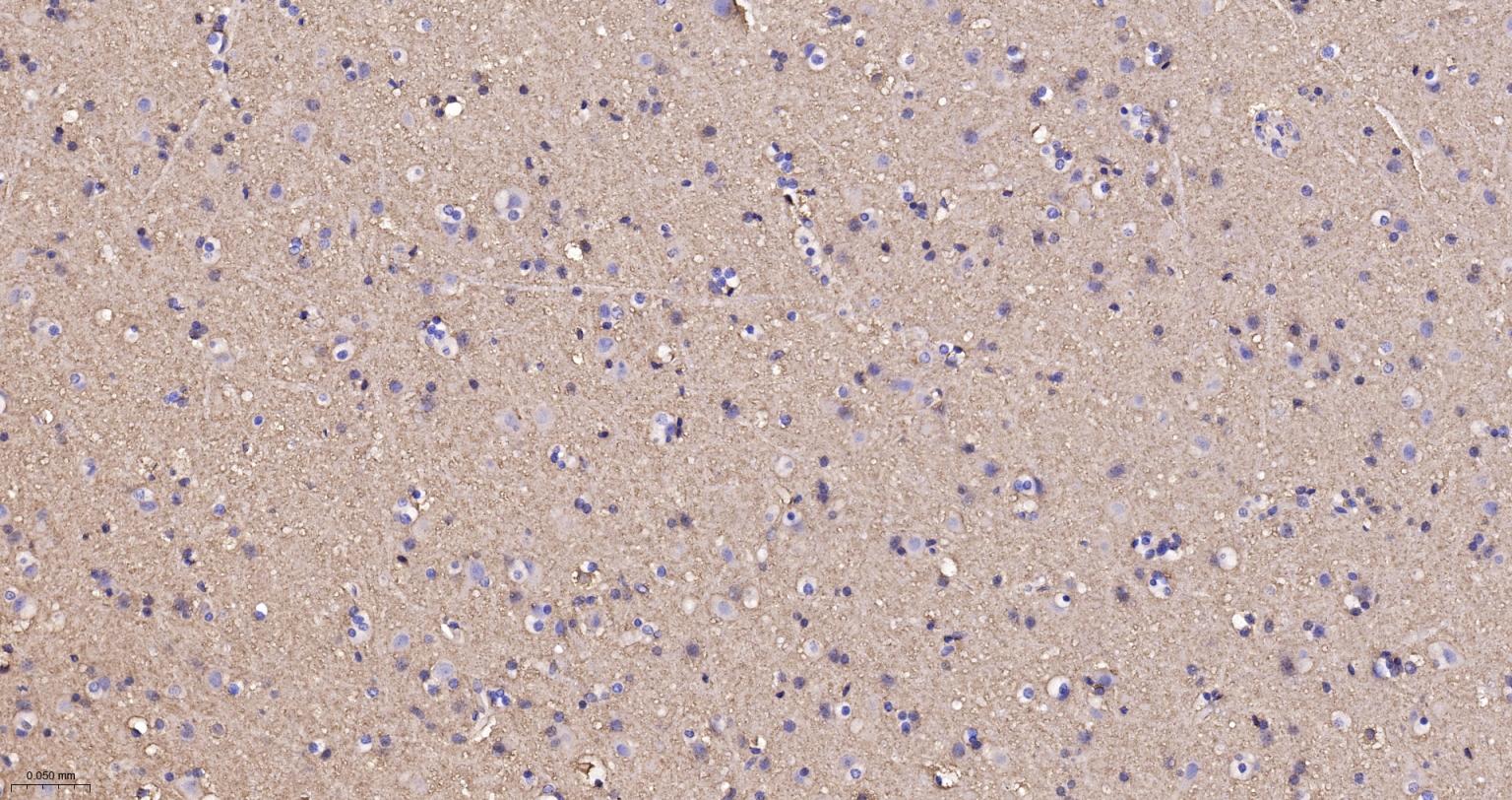 Paraformaldehyde-fixed, paraffin embedded Human Cerebrum; Antigen retrieval by boiling in sodium citrate buffer (pH6.0) for 15 min; The section was incubated with SPECA Recombinant Monoclonal Antibody, Unconjugated (bsm-61537R) at 1:200 overnight at 4°C, followed by conjugation to the bs-0295G-HRP and DAB (C-0010) staining.